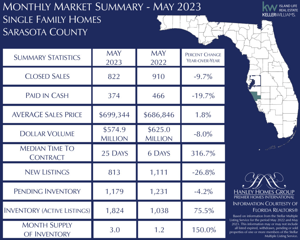 SARASOTA, Fla. (June 22, 2023) – Despite the persistence of higher home prices and interest rates, buyer demand is still present in the Sarasota and Manatee housing market. According to data from Florida REALTORS® and compiled by the REALTOR® Association of Sarasota and Manatee (RASM), May 2023 showed an ongoing rise in the month’s supply of inventory accompanied by an increase in the time it took properties to go under contract.